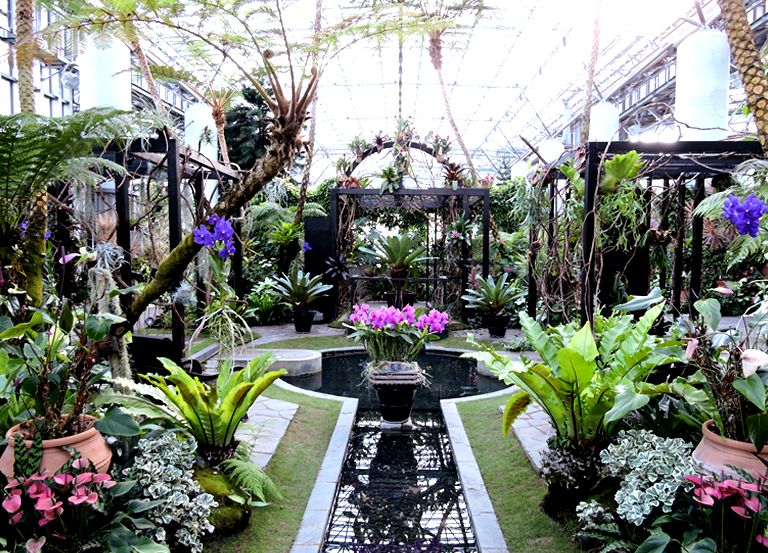色彩の庭には、熱帯、亜熱帯地域から集められた植物が展示されており、植物それぞれが持つ豊かな色彩と緑のマジックが訪れる人々を魅了します。