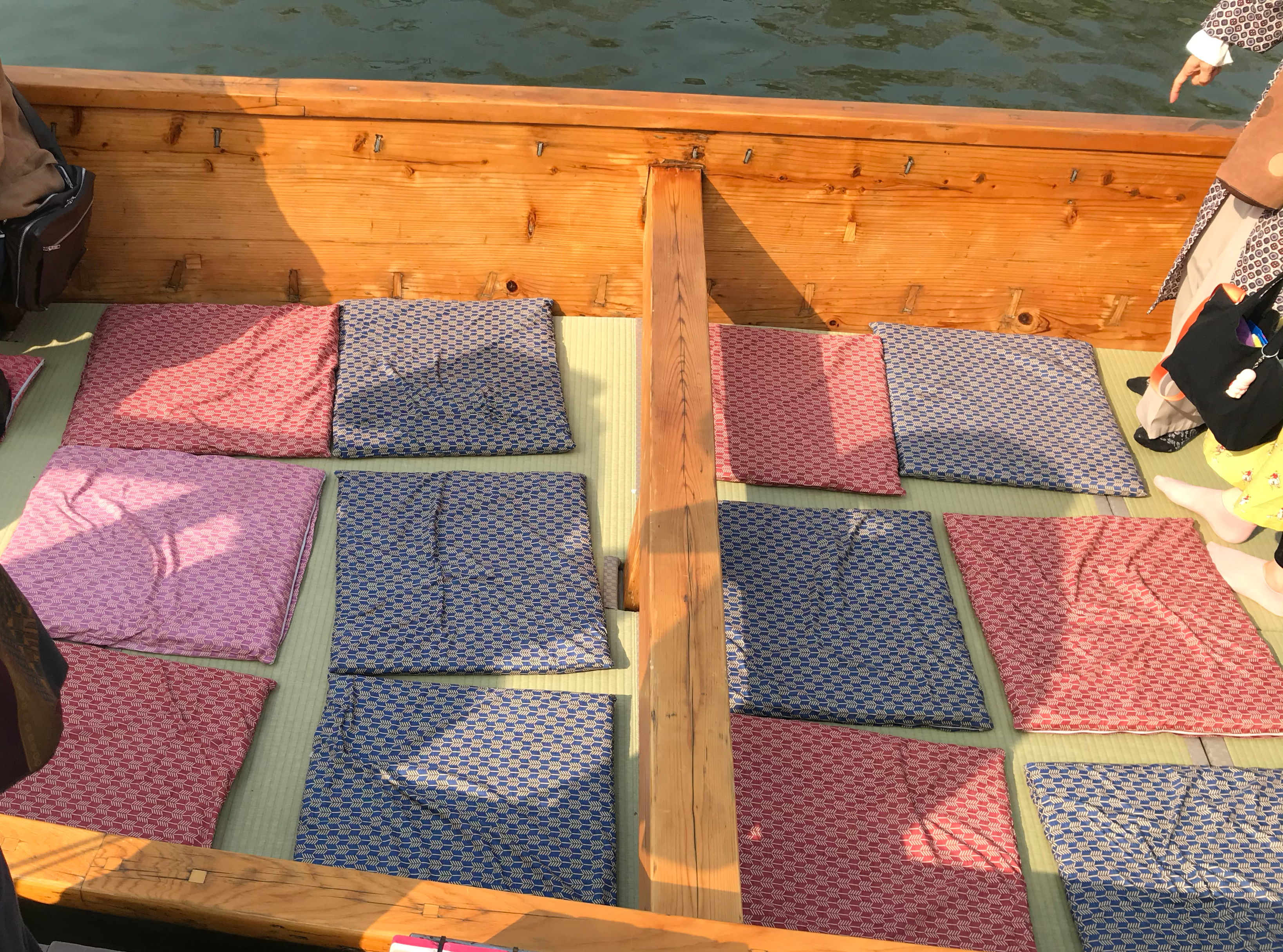船の中には丁寧に並んだ座布団があり、好きな席にのんびり座って、ここからの乗船風景を楽しめるます。
