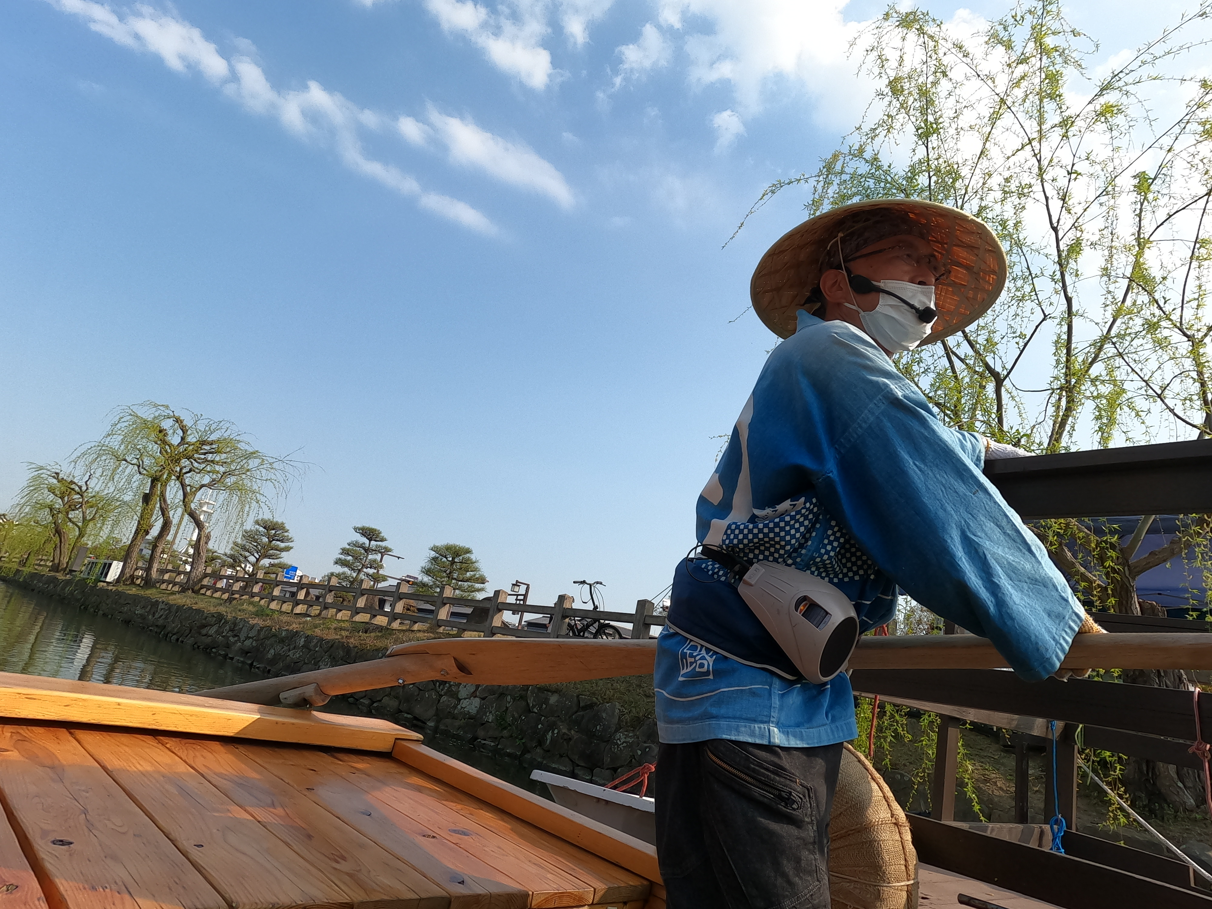 この日は、船頭の田路さんに、素晴らしいガイドでご案内頂きました。話しながら、大人数が乗っている船を漕ぐなんて、大変な重労働!!!