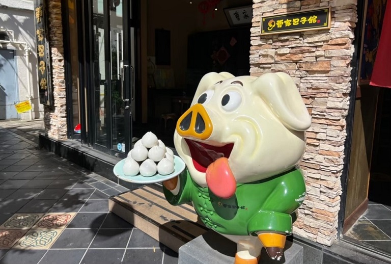 異国情緒たっぷりの町並みには、さまざまなお店が立ち並び、食べ歩きをすることもできます。