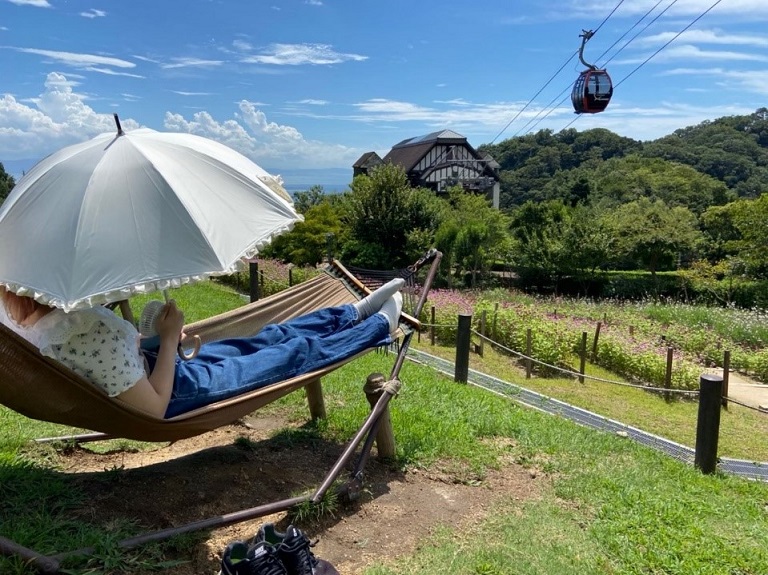 ここには、ハンモックが置かれており、風を感じながら景色を楽しむことができます。