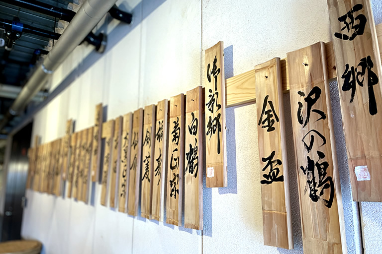 その工夫の1つが、灘五郷の酒蔵名が書かれた木札や提灯。