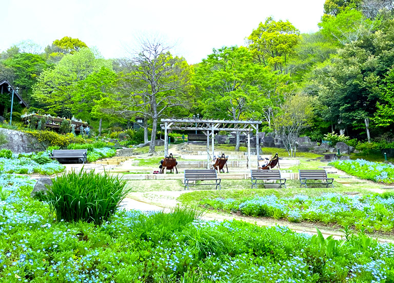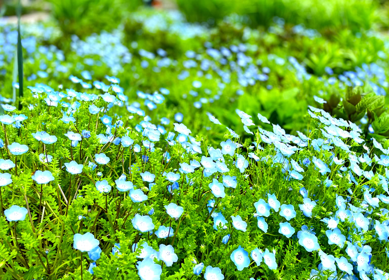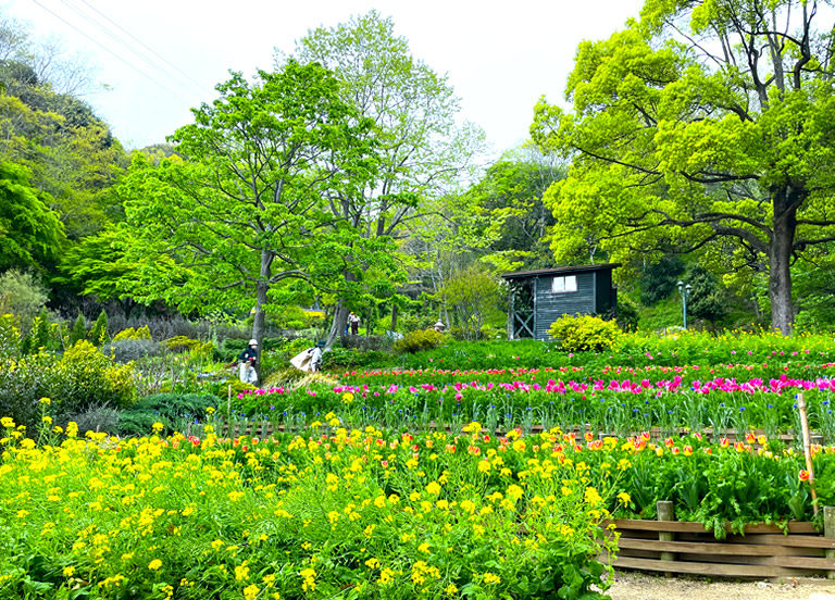 今回、私が訪れた4月中旬はハナナやチューリップが咲き誇り、ネモフィラも花開き始めていました。