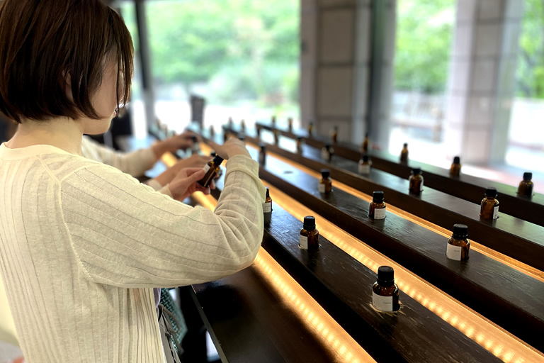 まず、無料でできるのが「至高の香り探し」。約80種類の天然エッセンシャルオイルの香り比べができるので、好みの香りを探してみるのも楽しいです。