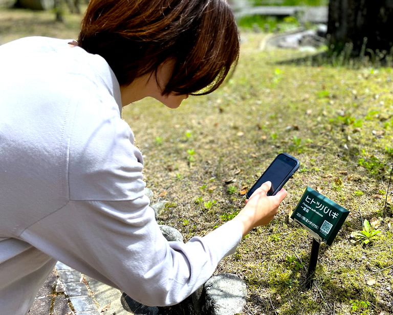 園内を散策していると、身近で見たことがある木が結構あって、これって薬になるんだって驚き。表示のQRコードをスキャンすると、それぞれの植物の説明が簡単に見られます。