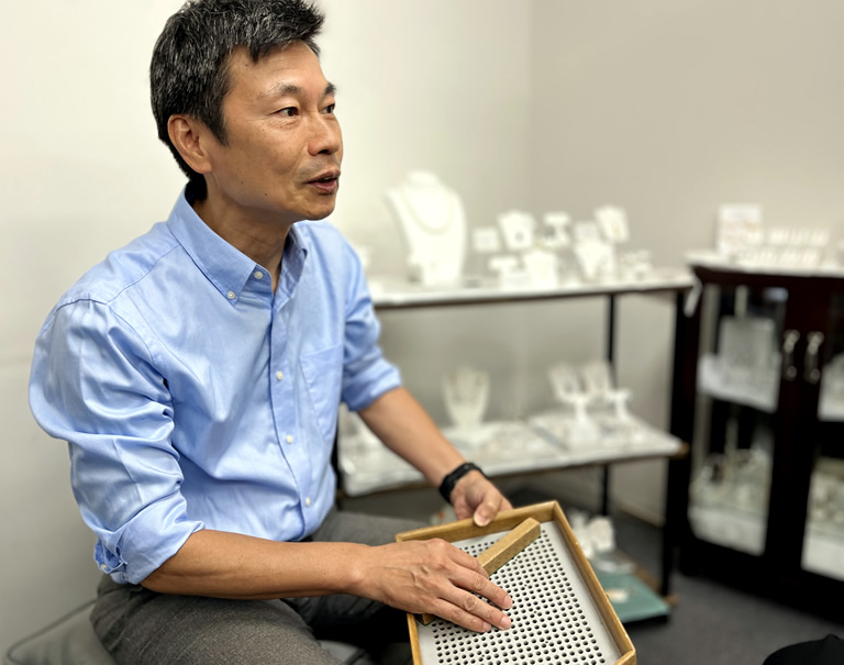 松田さんは、伯父が小浜に真珠養殖場を所有し、父親は真珠加工業の「松田真珠」を営むという真珠一家に誕生。大学卒業後にNYの真珠輸入会社で働き、世界で最も権威ある宝石学研究機関「GIA」の宝石鑑定士資格を取得。加工に加え、輸出や販売も手掛ける株式会社コウベ・プレシアス・パールを創業されました。