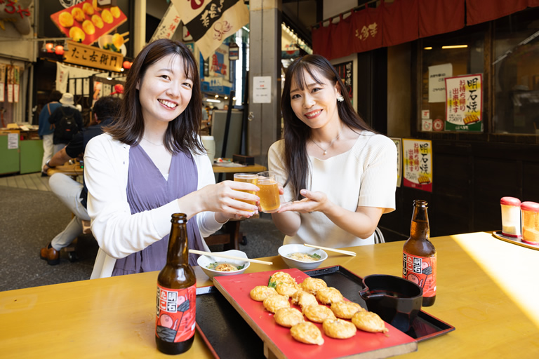 明石焼 15個 750円(税込)、明石たこビール650円(税込)。