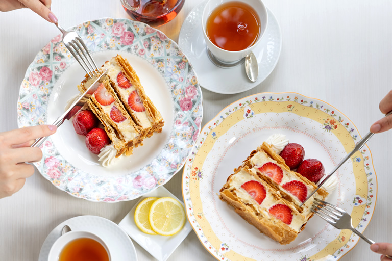 「苺のミルフィーユ ドリンクセット」コーヒー又は紅茶又はハーブティー付きで2,250円(税込)