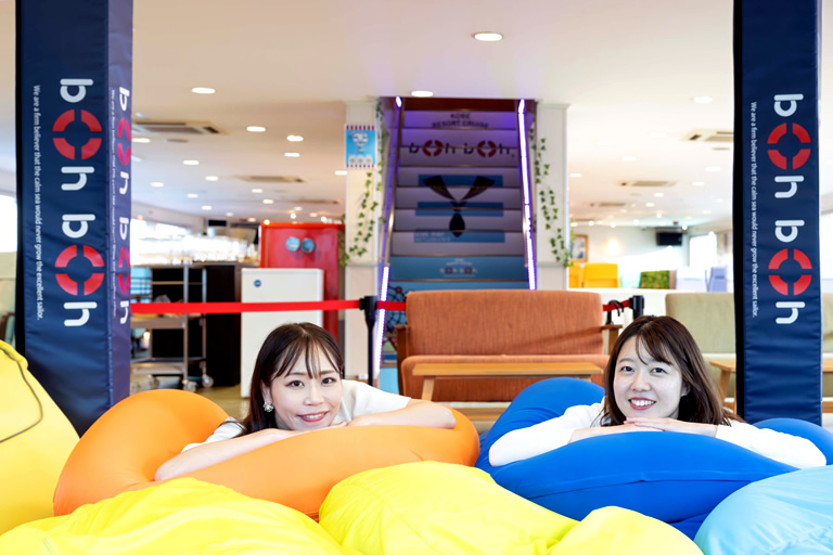船内にはyogiboが設置されたスペースや、ドリンク&兵庫のテロワール「神戸食」が揃ったカフェもあって、思い思いのスタイルで楽しめます。