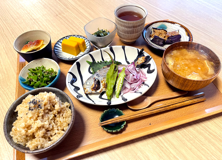 加西市産のお米、有機農法・自然農法の地場野菜、地元産の麹を中心にした、カラダに優しいお料理が頂けます。