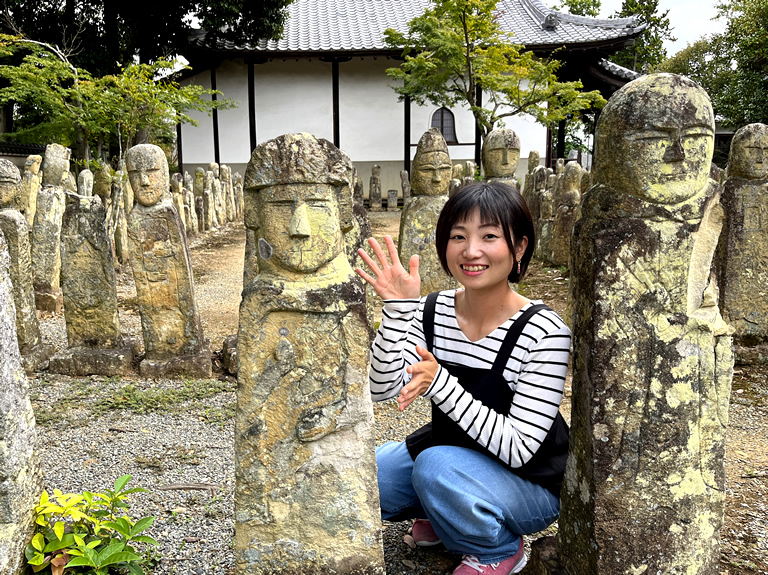 「親が見たけりゃ北条の西の五百羅漢の堂に御座れ」とうたわれ、親の顔や子に似た顔があると言われているので、自分や家族に似た石仏を探してみるのも楽しいですよ。