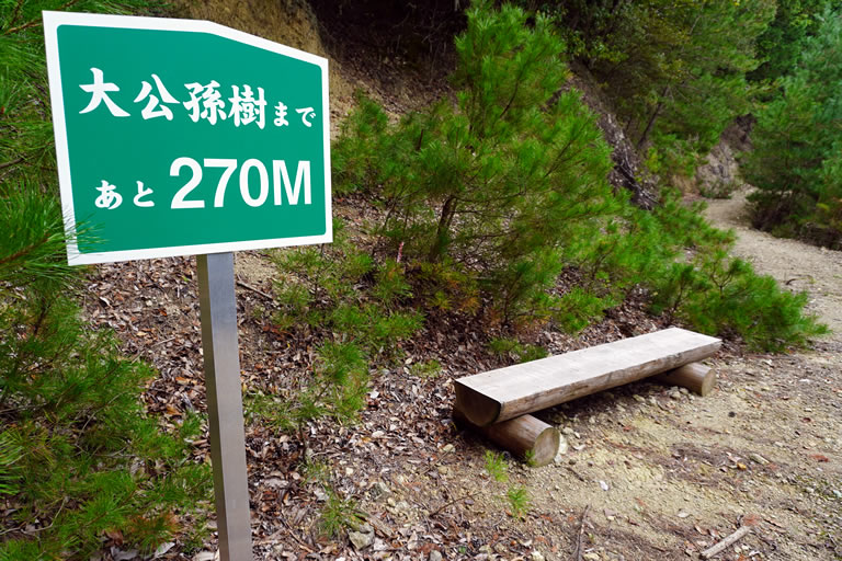 大イチョウまで270mの看板のあたりから、傾斜がかなり急になります。ベンチがあるのでちょっと休憩 ^^;)