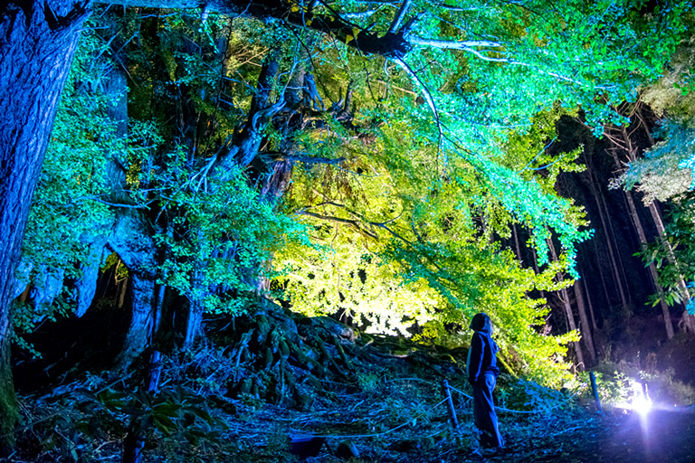 当日は登山道も灯りで照らされ、大イチョウのそばで地元出身アーティストによる演奏も行われます。