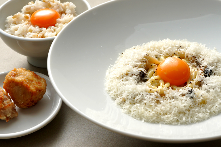「AWAJI BEER」を料理と共に楽しめるのが、「釜玉カルボTrepici(トレピチ)」。