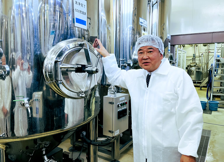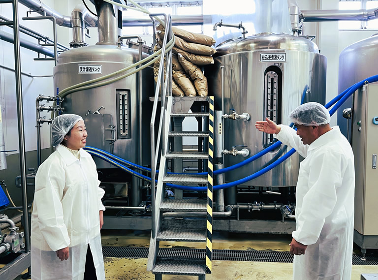 製造事業本部長の井上浩さんが醸造所内を案内してくださいました。※通常、工場見学は実施されていません。