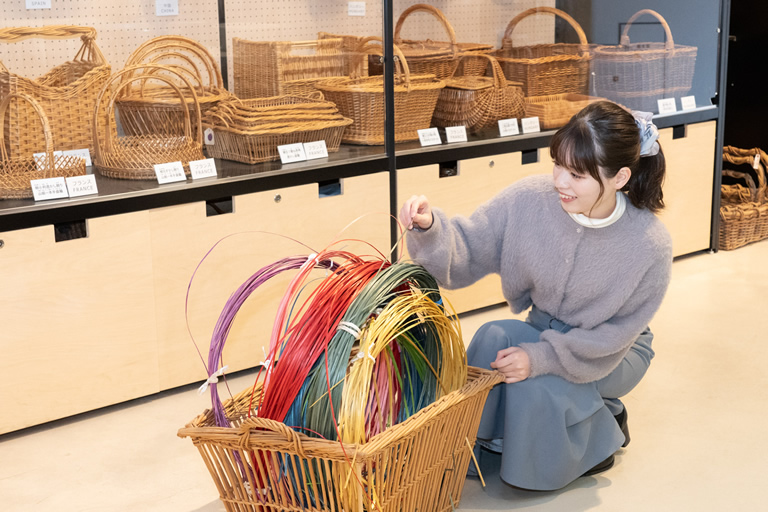 さらに、ミュージアムの奥では、国の伝統的工芸品「豊岡杞柳細工(とよおかりきゅうざいく)」の製作体験ができるんです。
