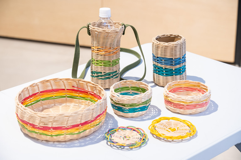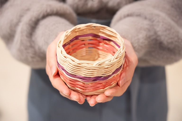 コースターやかごカップなど小さなものは、当日申し込みで体験できます。事前に予約すれば大きなかごなど本気の製作にも挑戦できますよ。
