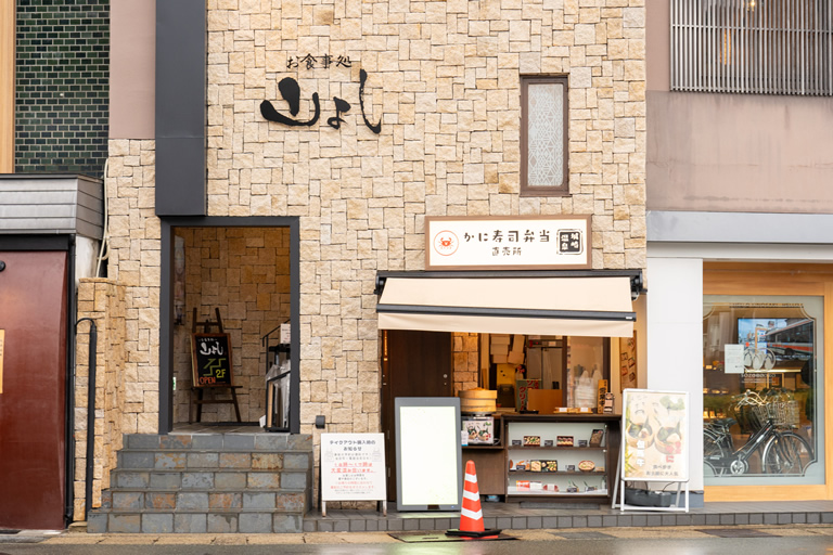 JR城崎温泉駅すぐにある『お食事処 山よし』は、柴山港にある水産卸の直営店。柴山港や香住港から直接仕入れているので、上質なカニがお手頃価格で頂けます。