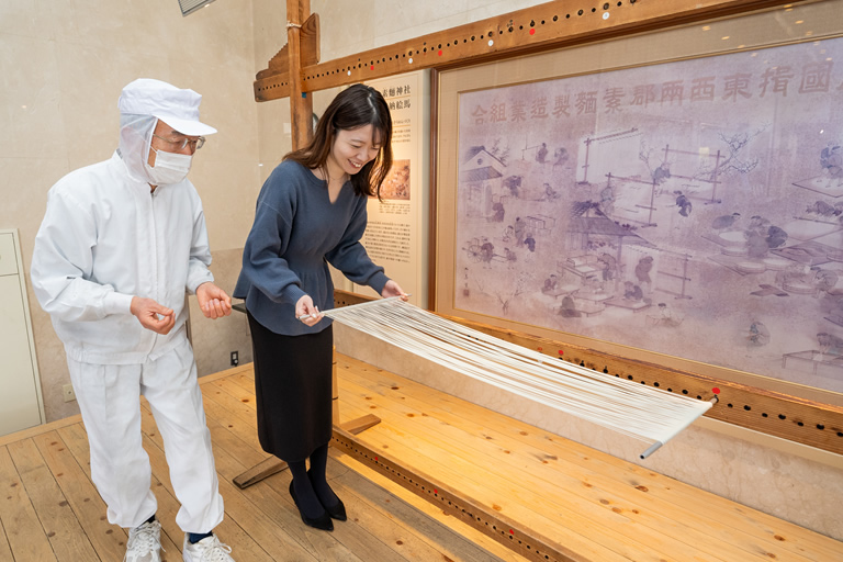 組合が原材料を一括で仕入れ、仕上がったそうめんをすべて組合で格付け検査。合格したものだけが全国に流通するという仕組みによって、高い品質が保たれているのだそう。