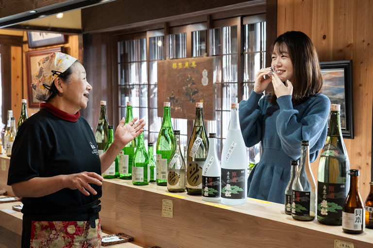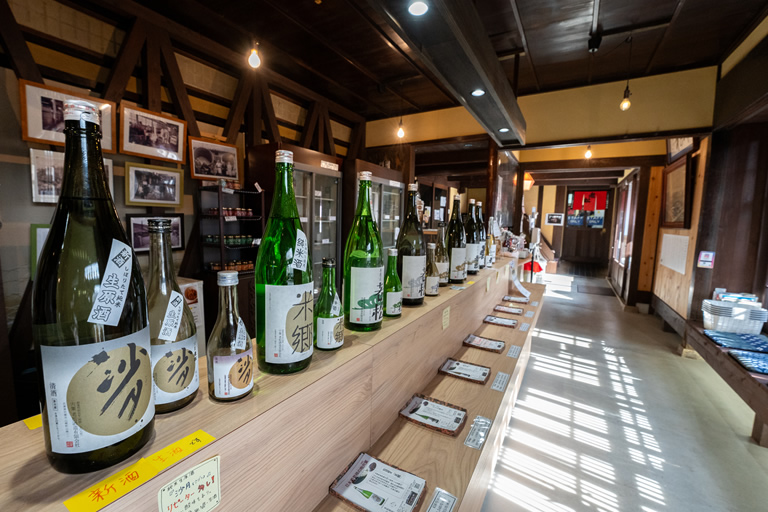 直売所もあり、代表銘柄の「寿惠広老松(すえひろおいまつ)」などの日本酒をはじめ、果実酒や甘酒なども販売しています。