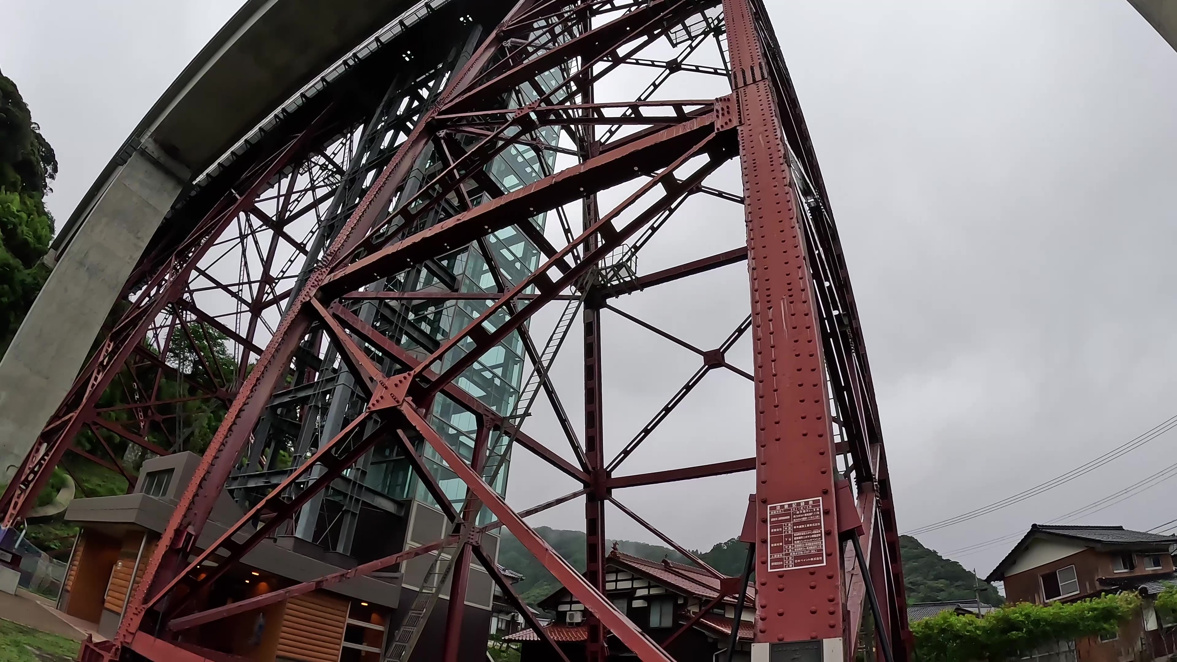 ガラス越しの余部クリスタルタワーを上がると高さ40mの空中に橋梁と列車と海の壮大な景色が広がっています。
