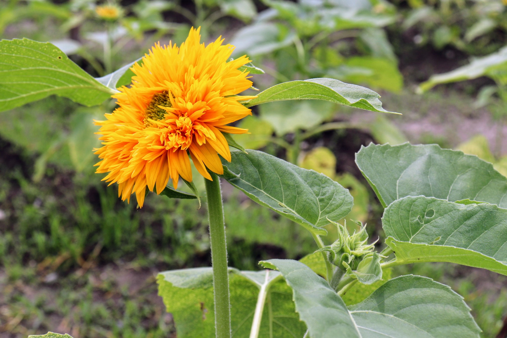 どれもこれも個性にあふれていますが、中でも「これもひまわり?」と一番驚かされたのがこちら。『東北八重』という日本の品種でふわふわの花びらが特徴的です。