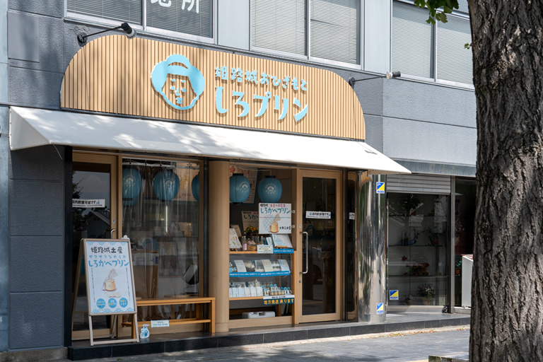 昨年7月にオープンしたプリン専門店で、ナチュラルモダンなインテリアに和のテイストを取り入れた、ブルーの刺し色が可愛い内観のお店です。「もしも江戸時代の姫路城下町にプリン屋さんがあったら」がコンセプト。壁に書かれたイラストや手土産用のパッケージもカワイイですよ。