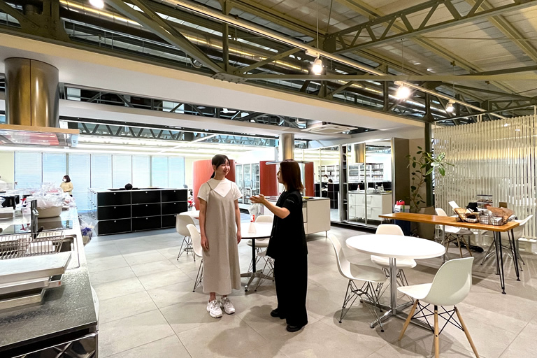 開放的かつオシャレな雰囲気のオフィスには巨大なキッチンがあって、ここで商品開発や試食をするそう。楽しそうな職場です♪