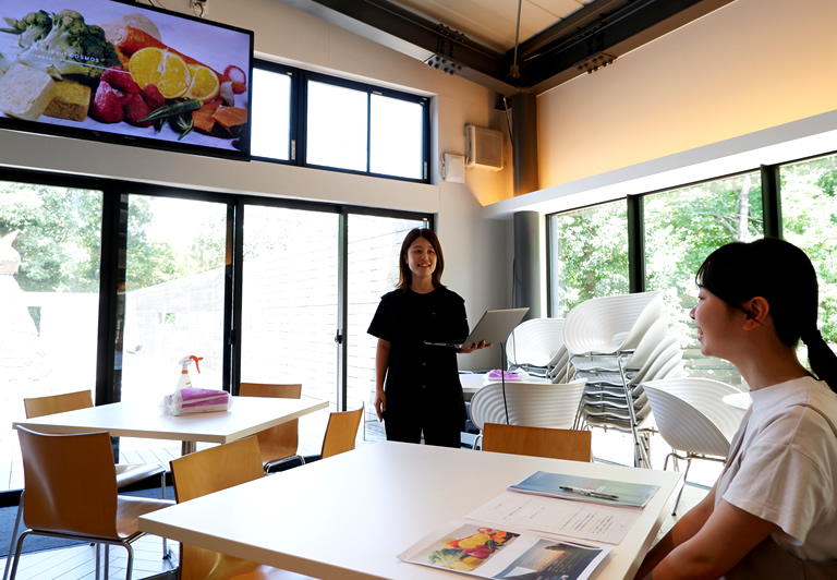 プログラムは「1日会社体験」をテーマに構成されていて、直販事業部の稲毛優子さんの案内でオフィス見学からスタート。