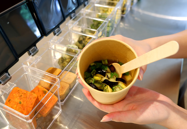 好きな具材にスープやお味噌を組み合わせて、オリジナルの1杯を作ります。