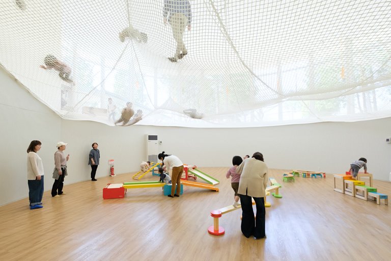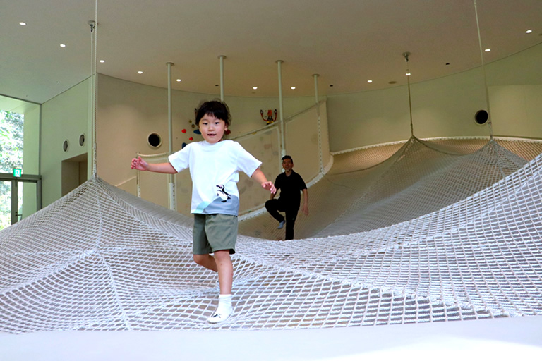 ネット遊具の周りを囲むように通路があって、子どもたちはぐるぐる走り回るだけでも楽しそう。
