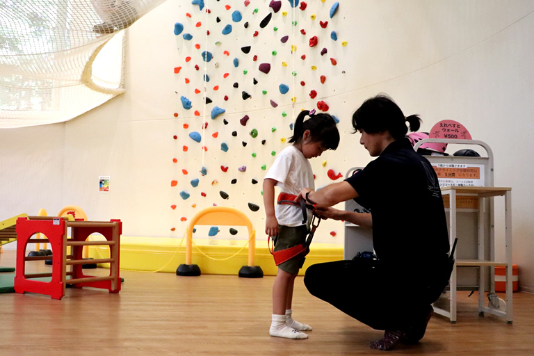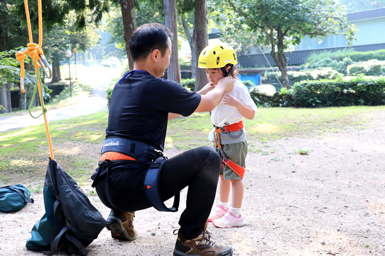 ヘルメットとハーネスを付け、子どもたちはすっかりクライマー気分♪