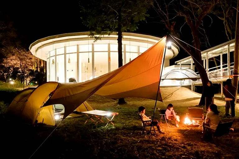 どのプランもテントは用意されていて、設営や撤収もすべてスタッフがしてくれるので、手ぶらで体験できます。館内にシャワーが完備されているのも嬉しいポイント。