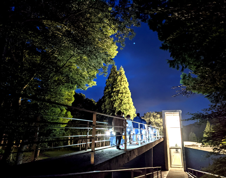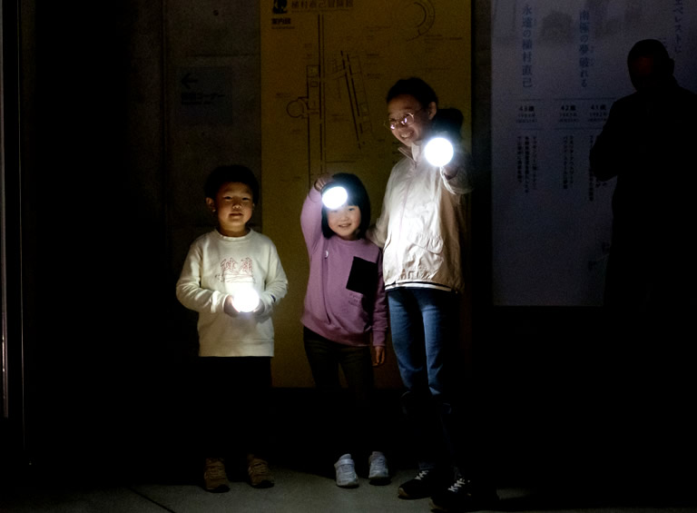 スタッフの案内で、ランタンとスタンプラリーカードを手に夜の博物館をまわります。真っ暗な夜の博物館を探検するって、子どもにはきっと特別な体験ですよね。