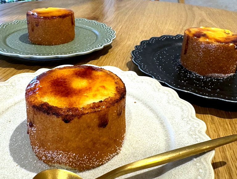バウムクーヘン生地の中に、カスタードと生クリームが入っています。目の前でキャラメリゼしてくれるパフォーマンスもポイント。フォークを通すと、中からトローッとクリームがあふれ出します。