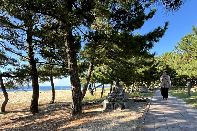 「シルエラ・シルクロ」の道路向かいには、夏は海水浴客で賑わう「慶野松原海岸」があります。夕陽がキレイなことでも知られる場所なので、お菓子や飲み物をテイクアウトして、海岸を散策するのもステキです。
