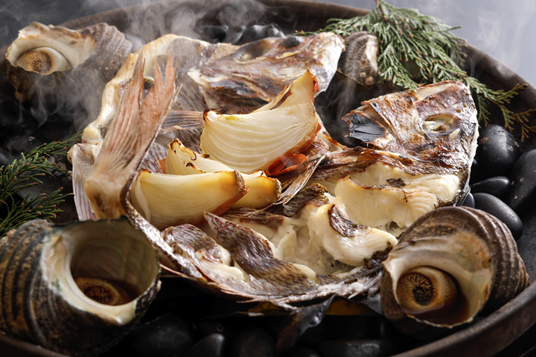 「シルエラ・シルクロ」を経営する「旅館 うめ丸」は、「鯛の宝楽焼き」をはじめとした鯛料理が有名。地元民にもファンが多くて、南あわじの名物料理です。
