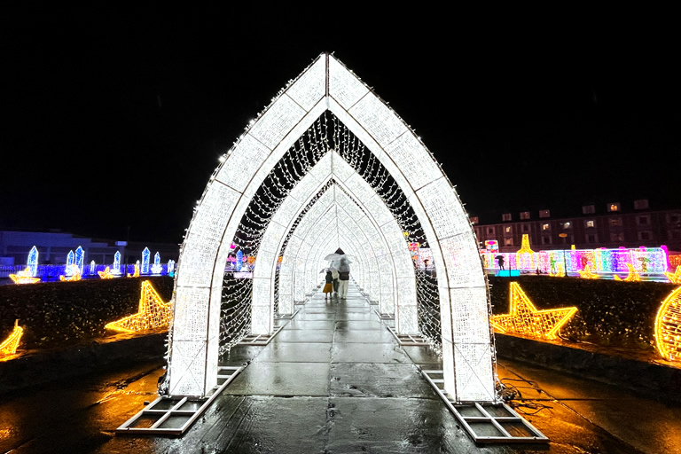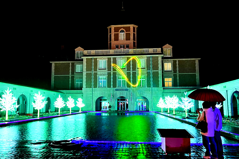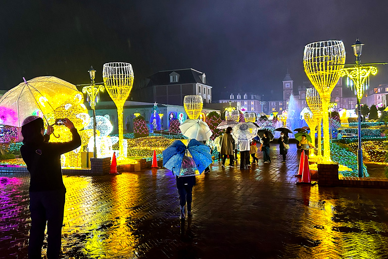 内覧会が実施された11月1日はあいにくの雨でしたが、濡れた地面に光がキラキラと反射してより幻想的な写真が撮れたのは雨の日だからこそ。