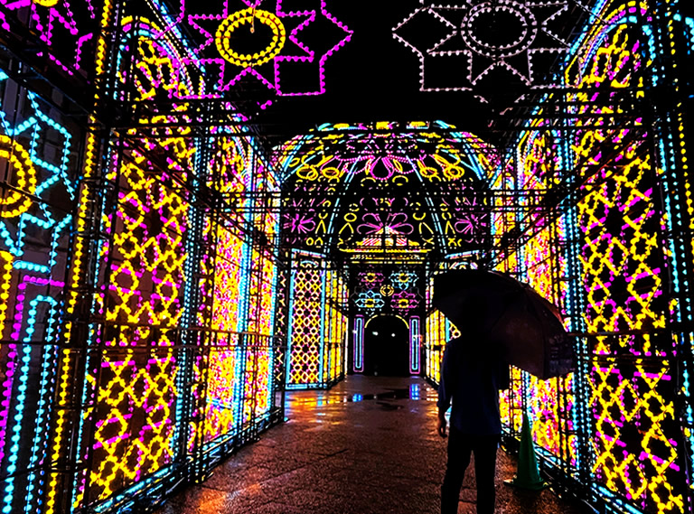氷のトンネルをイメージした「アイストンネル」やアラビアンナイトの壮麗さを再現した「アラビアンパレス」など過去の人気イルミネーションも再登場。