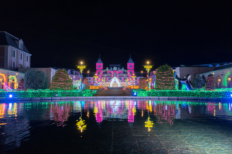 西日本最大級の道の駅である敷地内には、地産地消にこだわった直売所やレストラン、ホテル、温泉、遊園地、フルーツ狩りなどのレジャースポットが勢揃い。イルミネーションと共に、神戸グルメやショッピング、入浴などが一緒に楽しめます。直売所や遊園地などは17時まで、レストランも最長20時(L.O.19時)までの営業なので、グルメやショッピングの後で、イルミネーションを楽しむのがおすすめです。