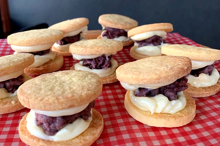「バターサンド 丹波大納言小豆」は、アーモンドとバターを贅沢に使ったサクッと香ばしいサブレ生地で、丹波大納言小豆の餡&バタークリームをサンド。