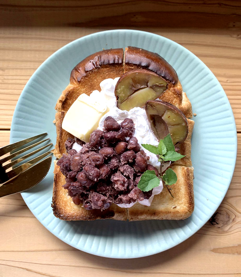 「なかで農場」のゆであずきを使った餡とバターを挟み込んだ「丹のあんバターサンド」は、トースターで軽く温めて食べるのがおすすめ。