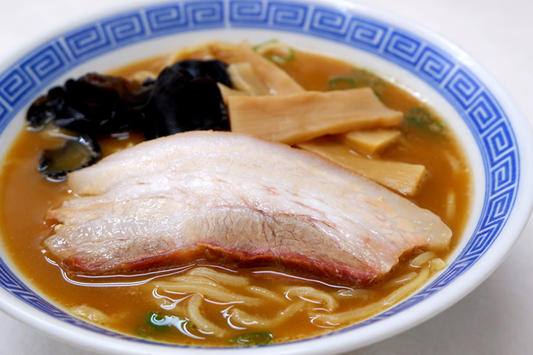 厚みのあるチャーシューがドドーンと乗った中華そば。