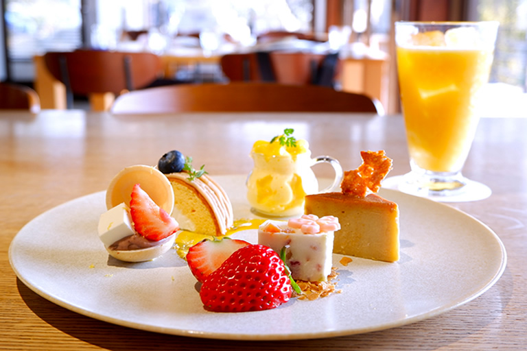 内容は季節によって変わりますが、まるおファームのいちご、赤穂みかん、自社製の塩を使ったスイーツを盛り合わせ。塩が甘みを引き立てる、老舗の塩メーカーならではの絶品塩スイーツが魅力です。