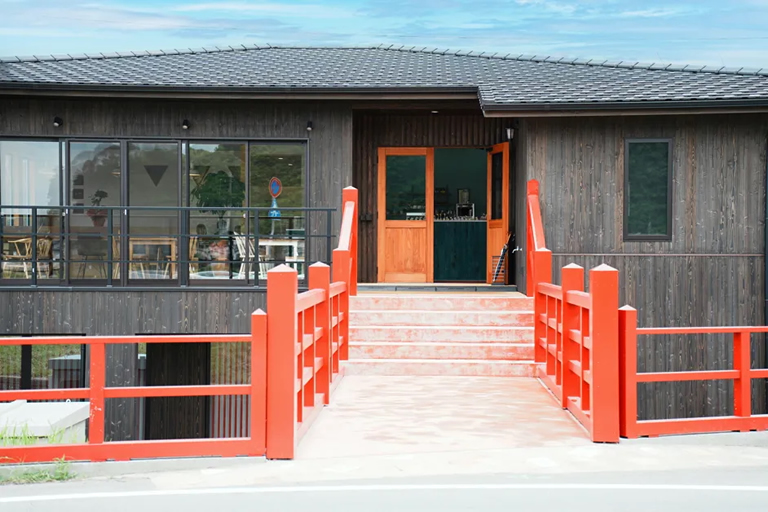 JR播州赤穂駅から徒歩約15分。朱色の橋が目を引く「リバーサイドテラス SEN」は、スタジオジブリの『千と千尋の神隠し』の世界観がテーマのレストラン。