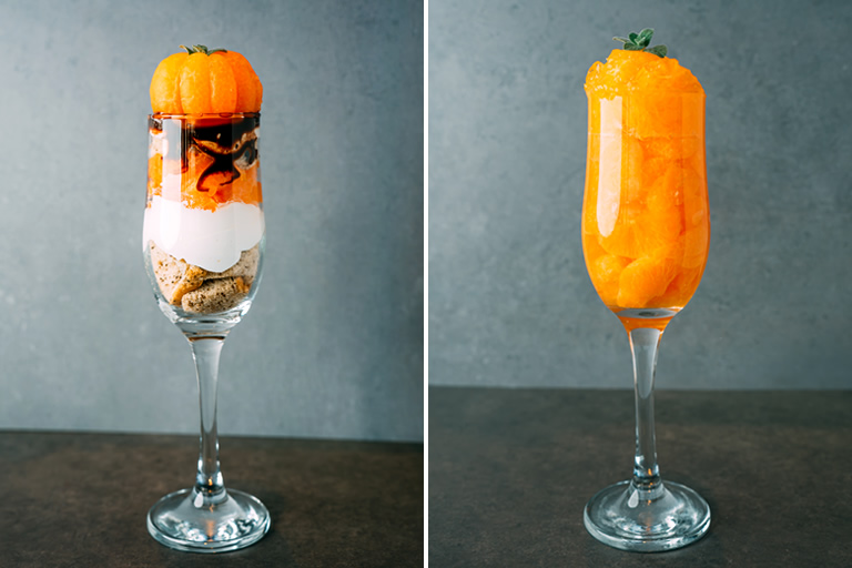 「赤穂スイーツ」として今年初お目見えしたのは、赤穂みかんをこれ以上ないほど贅沢に使ったSNS映え間違いなしのスイーツです。水はけの良い地で海からのミネラルを豊富に受けて育った赤穂みかんは、酸味も糖度も高くて味が濃いのが特長。