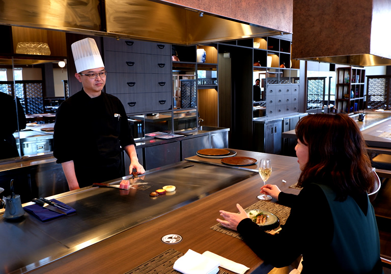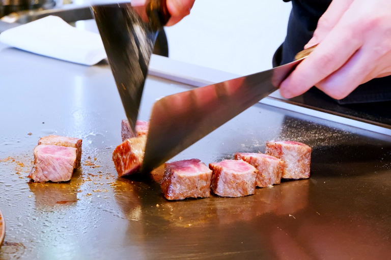 シェフの巧みな手捌き、お肉の焼ける音や匂いといったライブ感も鉄板焼きの醍醐味です。