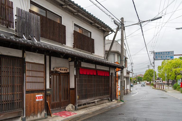 姫路城北勢隠門跡から続く清水橋を渡ったところにある、築100年以上の古民家を改築した日本料理店。昭和初期には酒蔵だったそうで、往時の建具や家具を生かした店内はどこを見ても趣があって素敵です。