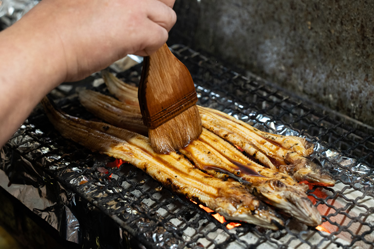 先日のゴールデンウイーク中は1日250匹ものあなごを焼き続けたのだそう。