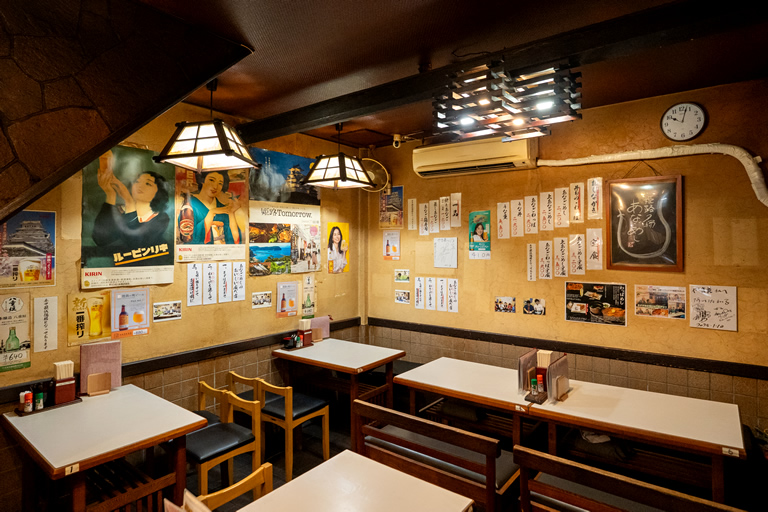 1階には個室が2部屋。2階は二間続きの和室にテーブル席が並んでいます。2階の窓を開けると姫路城の天守閣が見えます。